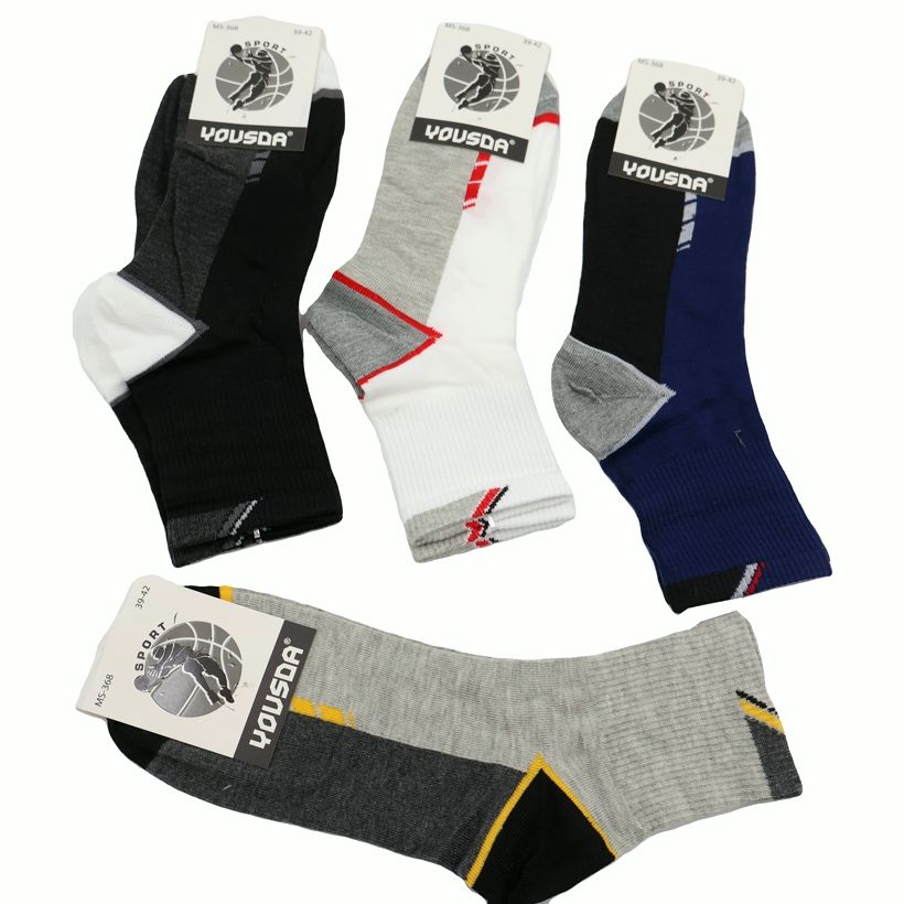 Zeķes vīriešu Yousda 1.pāris Materiāls:90% kokvilna,5% poliesters,5% elastāns. Dažādas krāsas -Melna, Pelēka, Tumši pelēka. Piezīme: raksts uz zeķēm var atšķirties no attēlā redzamā. |