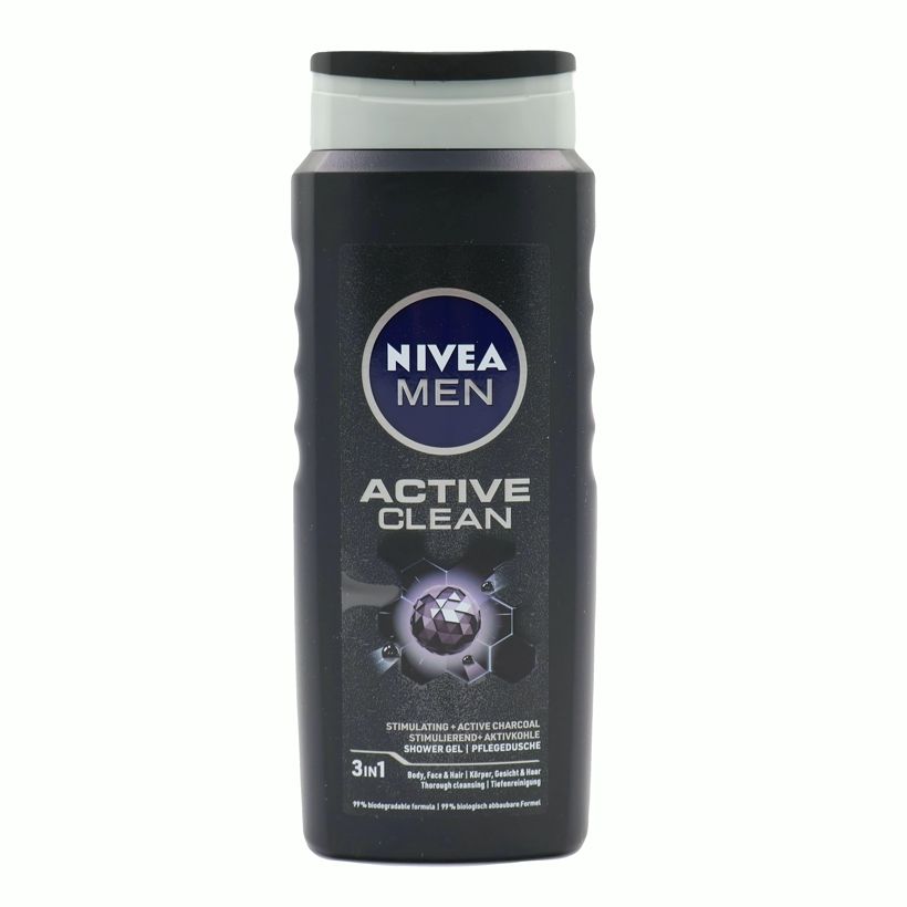 Dušas želeja 500ml NIVEA(Active Clean 3in1) Ķermenim, sejai, matiem.